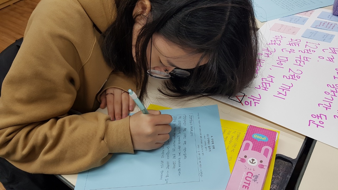 학생들 건의사항을 모아서 학교 대토론회 때 안건으로 올리고, 부장워크숍 때 전달해서 학교에서 개선할 수 있는 부분들은 개선했답니다. 물론 아이들에게도 추후 결과보고를 했구요. 예를 들면 화장실 수압문제 같은 경우, 학교가 언덕에 있고 애초에 배수관이 좁은 것이 문제였다는 것, 그래서 개선을 위해서는 큰 공사를 해야한다는 것만 알려줘도 아이들 불만이 크게 줄더라구요.